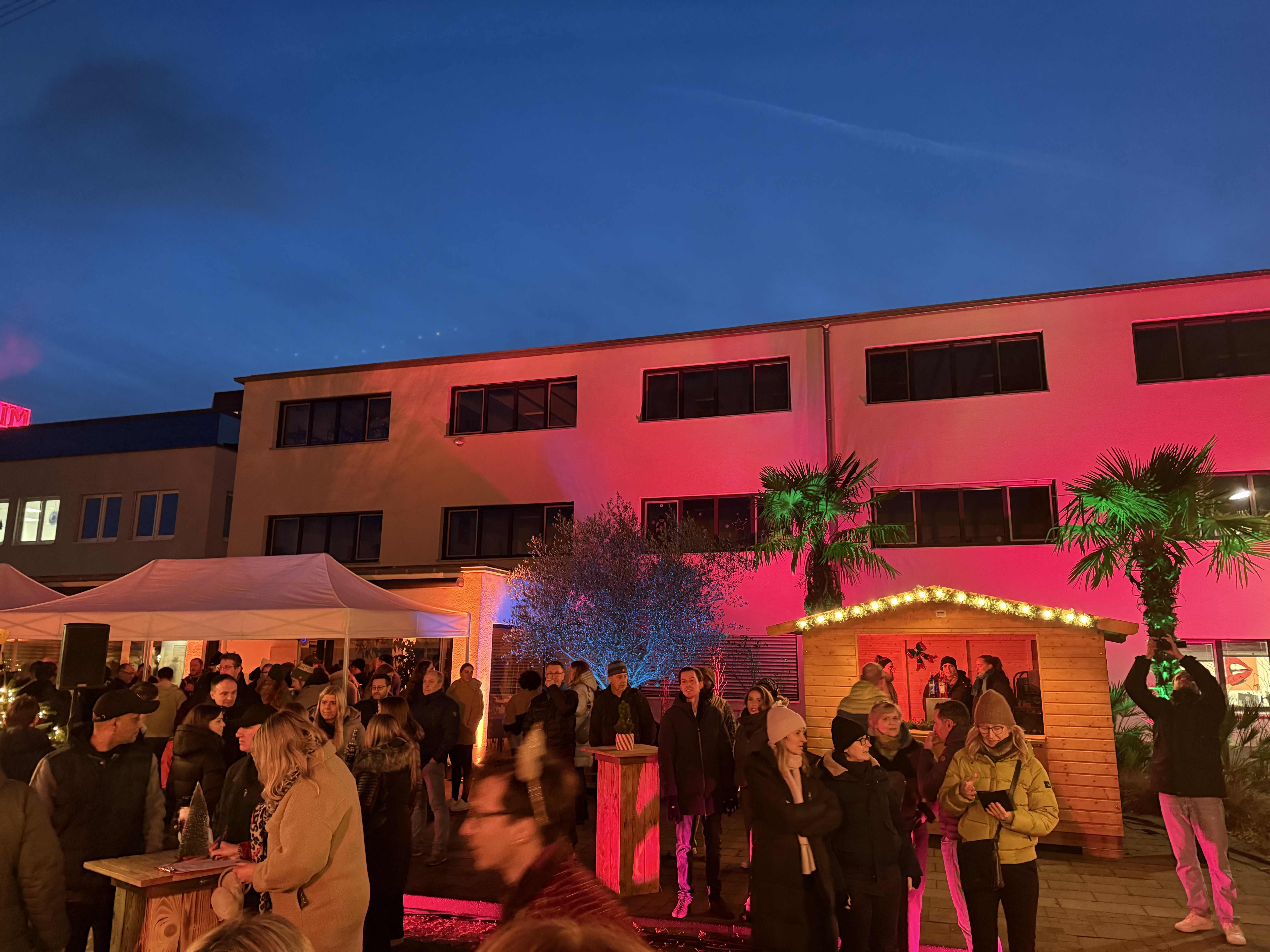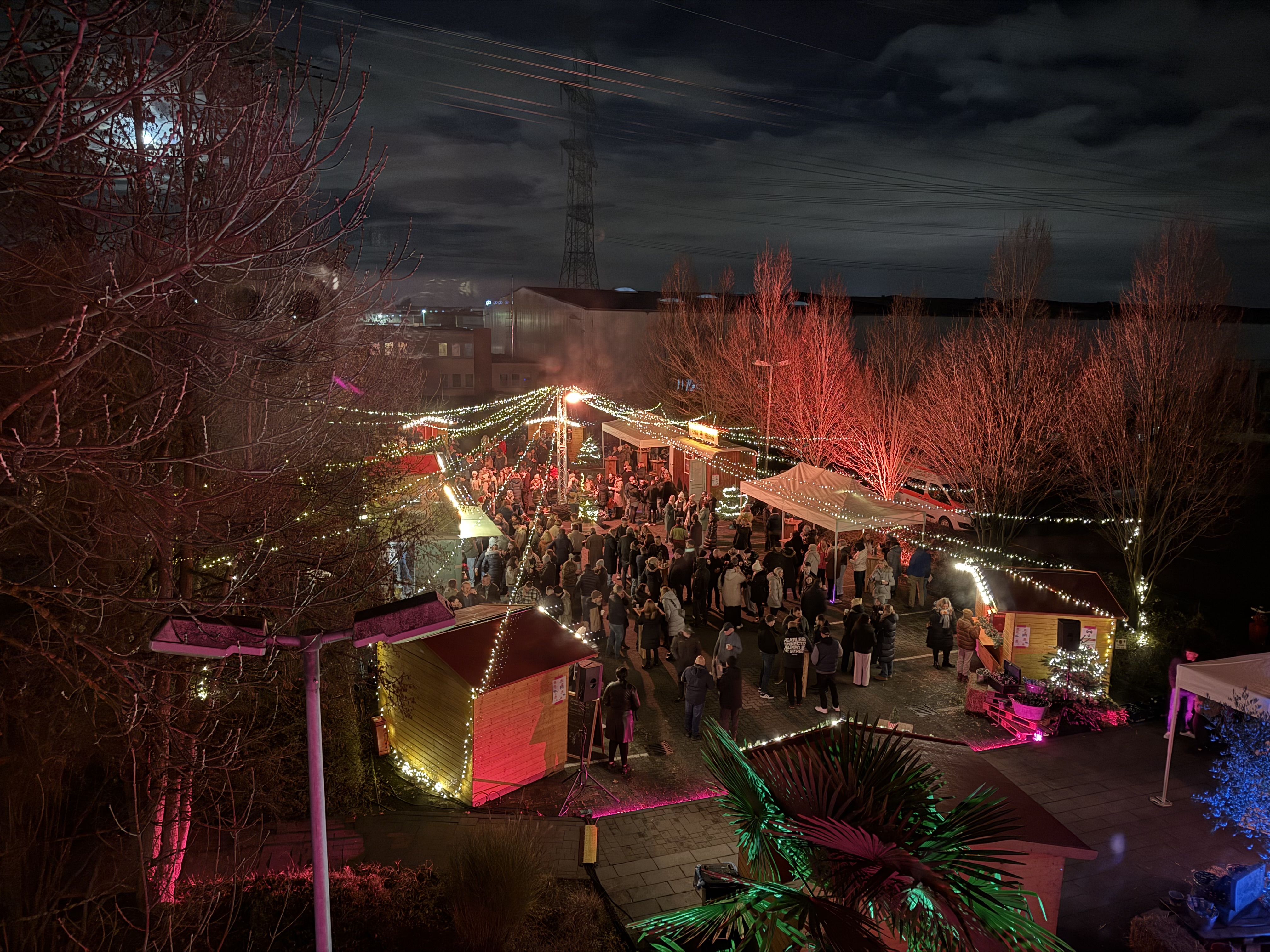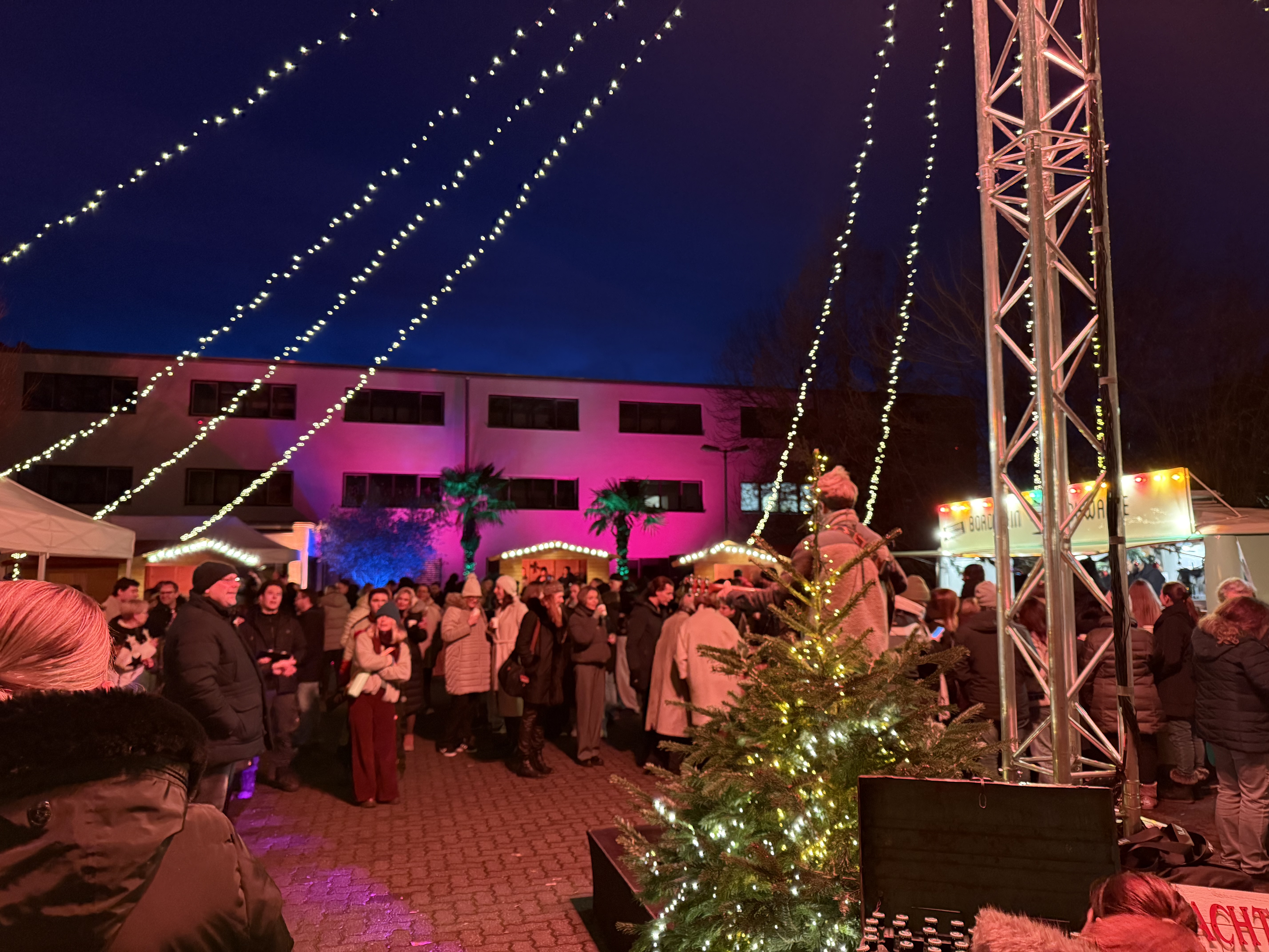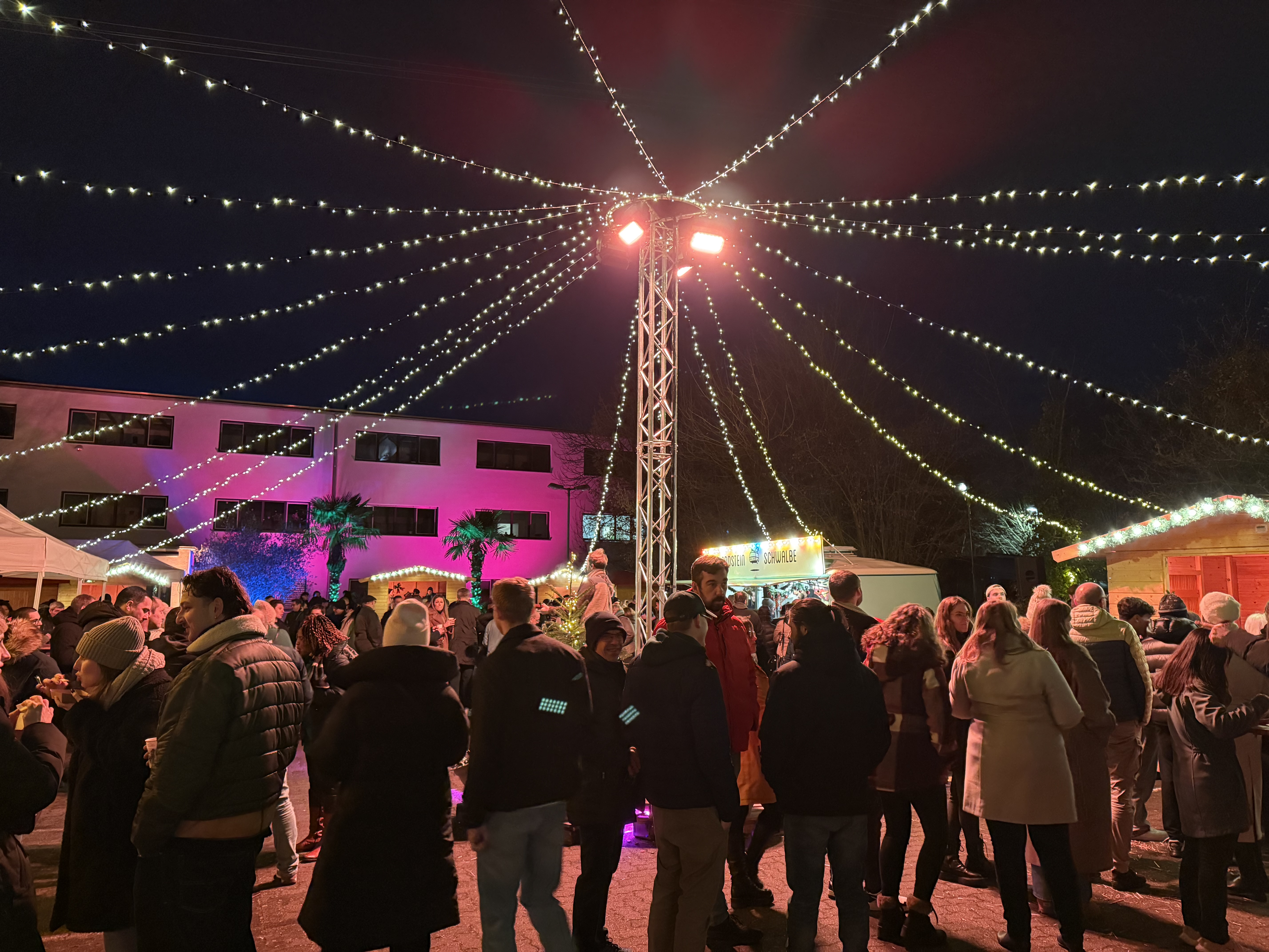Die Zahlen sprechen für sich: Über 300 Kolleginnen und Kollegen feierten gemeinsam, genossen an sechs festlich geschmückten Weihnachtshütten und zwei Foodtrucks kulinarische Highlights und ließen sich von 400 Glühwein und 150 Hot Winterdrinks wärmen. Ob Burger, Flammkuchen, Knödel, Poutine, Currywurst oder Reibekuchen – für jeden Geschmack war etwas dabei.